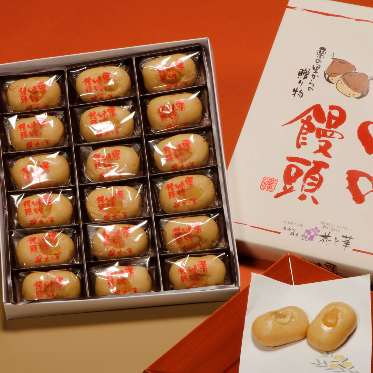 花と華自家製のお味噌を餡に練りこんだ当館オリジナルの味噌饅頭です。甘じょっぱい味噌餡と旧栗山村由来の栗との相性が抜群です。